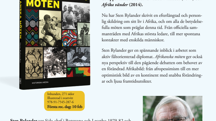 Sten Rylander ger en spännande inblick i arbetet som aktiv fältorienterad diplomat. Afrikanska möten ger också nya perspektiv till den pågående debatten om behovet av en förändrad Afrikabild: från afropessimism till en mer optimistisk bild av en kontinent med snabba förändringar och ljusa framtidsutsikter.