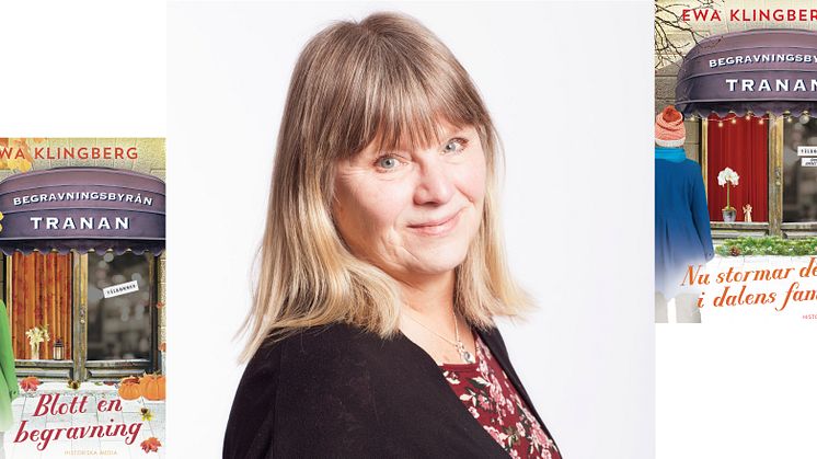 Feelgoodromaner brukar vanligtvis utspela sig i mysiga miljöer som bagerier, bokhandlar och strandnära caféer. För vem skulle vilja läsa om en så dyster plats som en begravningsbyrå? Många, tydligen! Författaren Ewa Klingberg, som själv tidigare arbetat på en begravningsbyrå, gör succé med den nya romanserien Begravningsbyrån Tranan.