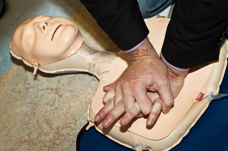 Bröstkompressioner vid plötsligt hjärtstopp.