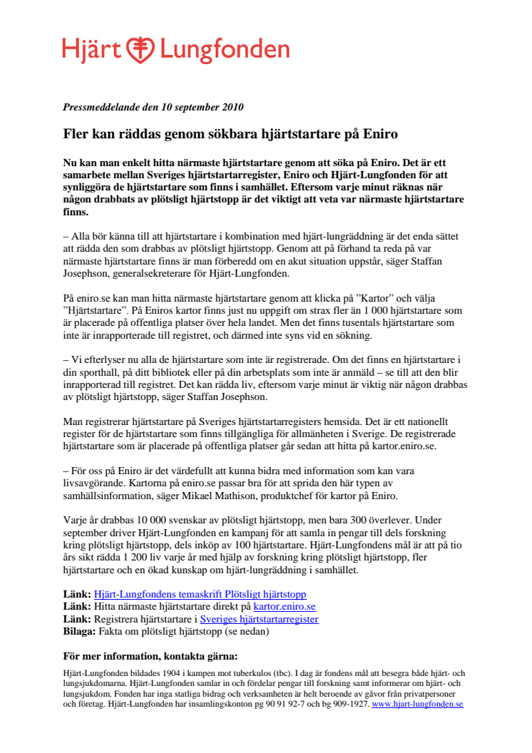 • Fler kan räddas genom sökbara hjärtstartare på Eniro