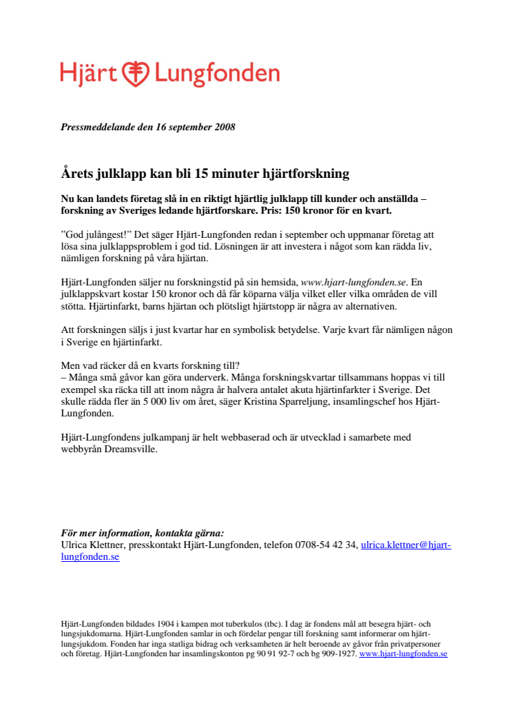 Ulrica Klettner, presskontakt Hjärt-Lungfonden, telefon 0708-54 42 34, ulrica.klettner@hjart-lungfonden.se