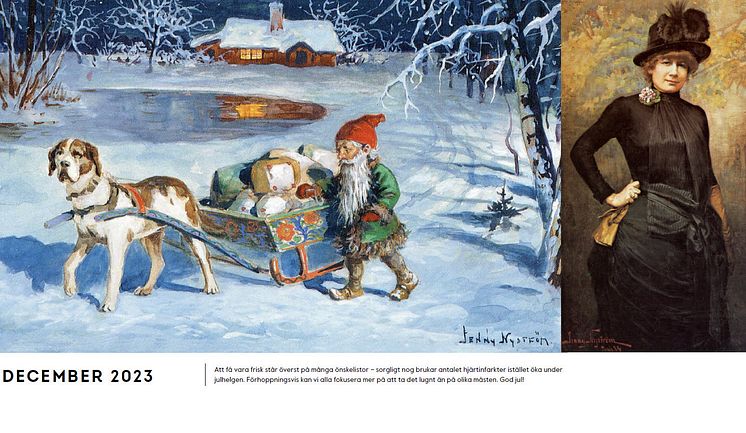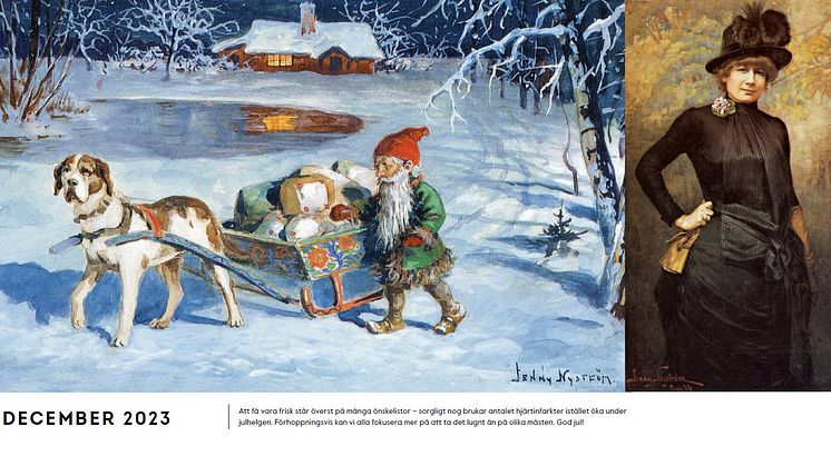 Jenny Nyström är en av Sveriges mest älskade konstnärer. Idag är hon kanske mest känd för att ha gett den svenska tomten ett ansikte. Det stora genombrottet kom 1881 med Viktor Rydbergs Tomten. Genom ett samarbete med Kalmar läns museum har Hjärt-Lungfonden kunnat förena Jenny Nyströms illustrationer i kalendern med den avgörande roll hon spelade i Hjärt-Lungfonden tidiga historia.