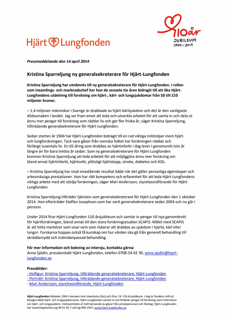 • Kristina Sparreljung ny generalsekreterare för Hjärt-Lungfonden