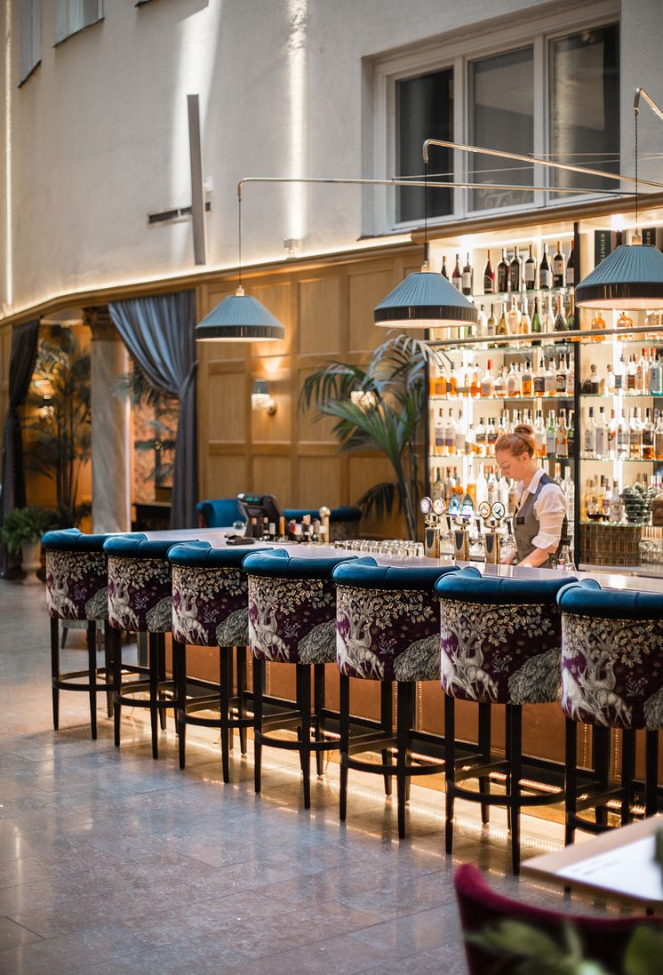 Vinbaren finner ni i hotellets luftiga innegård, med något lugnare stämningen. Perfekt när man vill varva ner eller ha en pratstund med lågt surr om livets alla frågor.