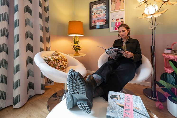 Ut med det gamla och in med det … gamla! Det var devisen när HKC Hotels inredare Lina Östlundh fick i uppdrag att i samarbete med Myrorna inreda tre nyrenoverade rum på Hotel Noble House i Malmö – helt hållbart. Allt i rummet utom sängarna är återbrukat eller har fått ny design, dessutom präglas de tre rummen tydligt av varsin 80-tals film.