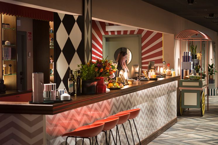 Tivolitema på BW Plus Åby Hotel, inrett av scenografen Lina Östlundh