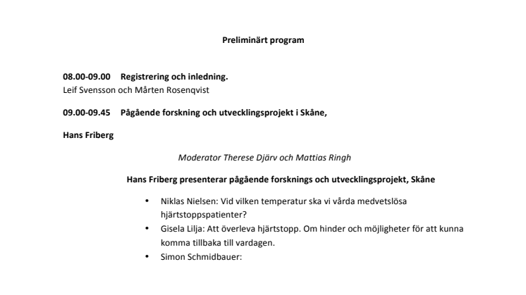 Vetenskapligt symposium om hjärtstopp den 11 april 2016