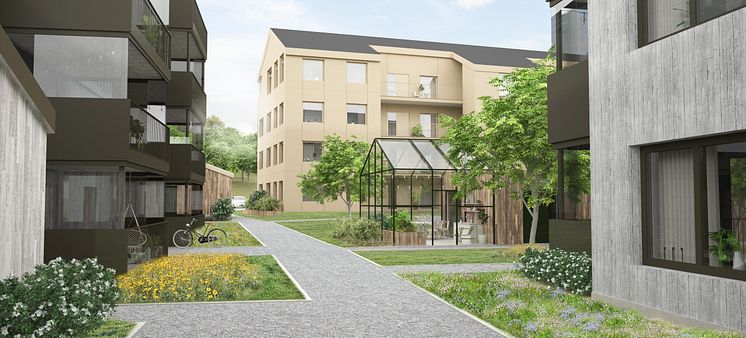 I Nordtag bygger Hökerum Bygg cirka 130 bostadsrätter. På gårdarna planeras växthus och små gårdshus för en trivsam utemiljö.