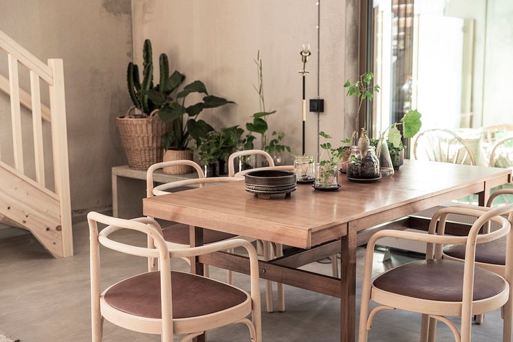 Stolar från Gemla - omslipade. Teakbordet är ett fynd för strax under 2000 kr. Keramik har fått en allt högre prislapp på secon hand sighterna, men fortfarande är det mycket prisvärt.
