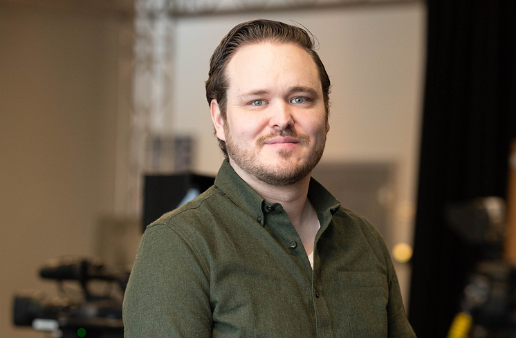 Porträttbild med Andreas Andersson, som undervisar i bildproduktion vid Högskolan Dalarna.