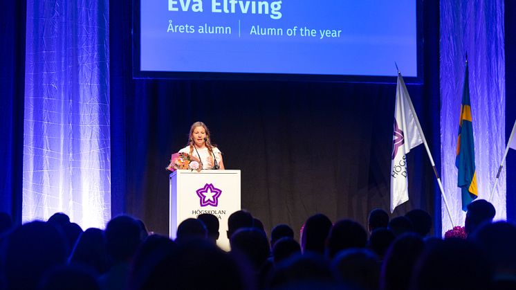 Bland talarna fanns också avgående kårordförande Ebba Erkas, ceremonins konferencier Emelie Westergren och alumnen Eva Elfving, som under ceremonin fick ta emot utmärkelsen ”årets alumn” för sitt engagemang och sina yrkesmässiga framgångar efter studierna.