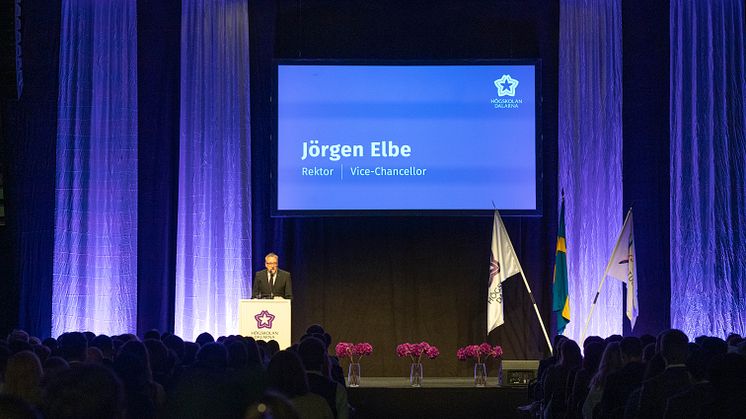 – Jag hoppas att ni verkligen kan glädjas över er tid vid vårt lärosäte. Var framförallt stolta över vad ni presterat och uppnått under er studietid, sa Jörgen och fortsatte:
