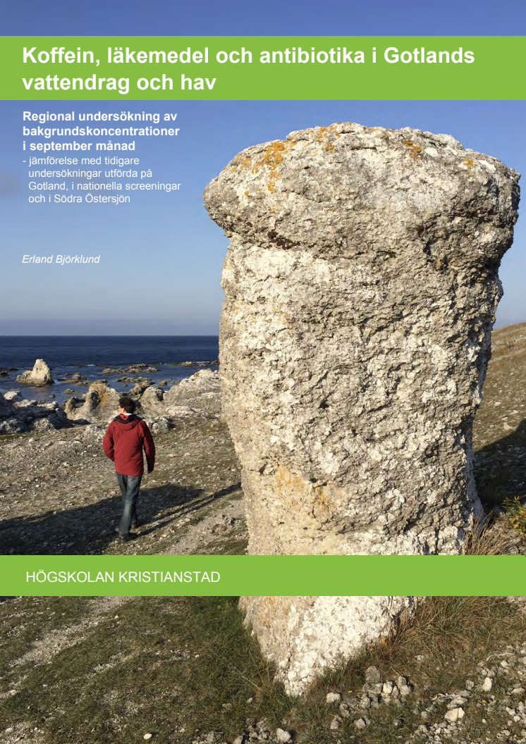 Slutrapporten Koffein, läkemedel och antibiotika i Gotlands vattendrag och hav av Erland Björklund. Regional undersökning av bakgrundskoncentrationer i september månad - jämförelse med tidigare undersökningar utförda på Gotland, i nationella screeningar och i Östersjön.