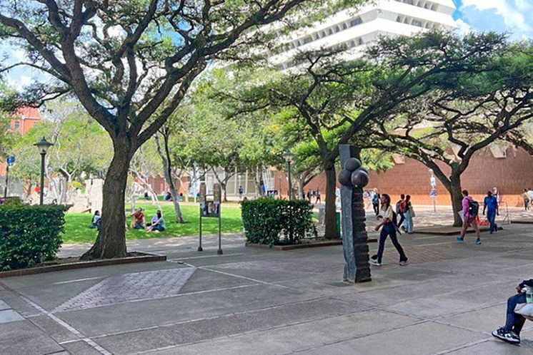 På University of Pretorias campus finns parker med skugga från solen.