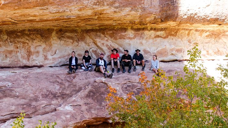 Studenter sitter under en av ”broarna” av sandsten i Natural Bridges National Monument i Utah.