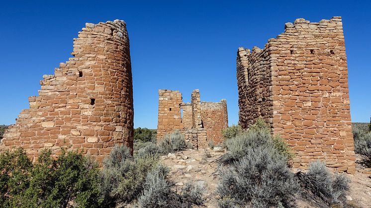 Nationalmonumentet Hovenweep i Utah, med ruinerna av förhistoriska byar från puebloindianernas tid. Ruinerna består av torn och hus med flera våningar, byggda i tegel och sten och övergavs redan på 1200-talet. Här kan du själv vandra runt bland ruinerna!