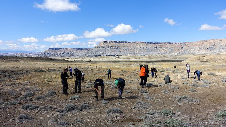 Studenterna letar ostronfossil utanför Hanksville, Utah, i Great Basin-öknen.