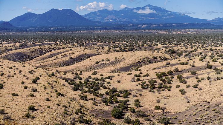 Vulkanen San Francisco Peaks, Arizona, nere från gränslandet mot Great Basin Desert.