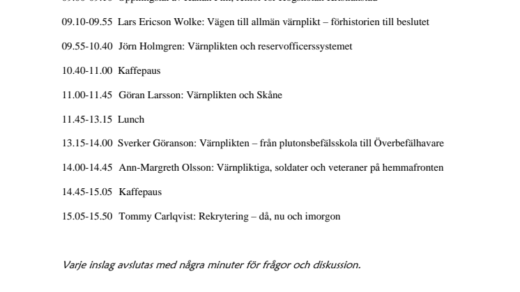 Program för symposium om värnpliktens historia (pdf, 13 kB)