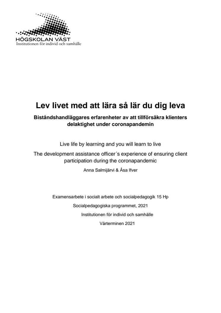 Examensarbete Socialt arbete 2021: Anna Salmijärvi och Åsa Ifver