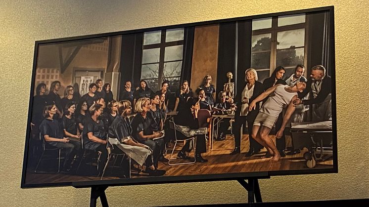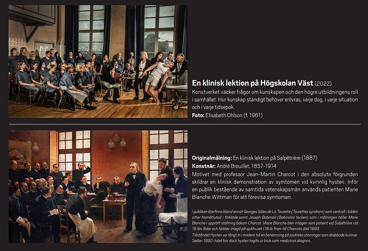 Det nya konstverket är en modern tolkning av: En klinisk lektion på Salpêtrière (1887) av André Brouillet, 1857-1914. Motivet med professor Jean-Martin Charcot i den absoluta förgrunden skildrar en klinisk demonstration av symtomen vid kvinnlig hysteri. Inför en publik bestående av samtida vetenskapsmän används patienten Marie Blanche Wittman för att förevisa symtomen.