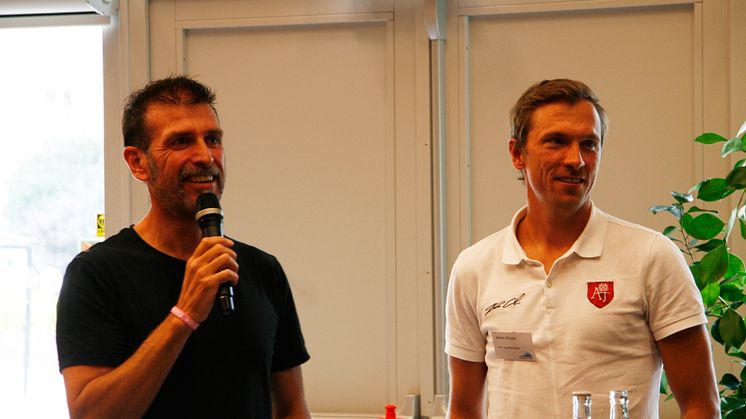Tidigare under 2016 föreläste friidrottslegendaren Kajsa Bergqvist på Högskolan Väst. I eftermiddag var det dags för två andra idrottsprofiler att följa i Kajsas fotspår. OS-guldmedaljörerna Johan Olsson och Anders Aukland (skidor) fanns bägge på plats när inspirationsdagen "Rörelse hela livet" anordnades på högskolan. Från början skulle även Emma Igelström, flerfaldig VM-medaljör i simning, deltagit. Tyvärr tvingades dock Emma Igelström kasta in handduken på grund av sjukt barn.