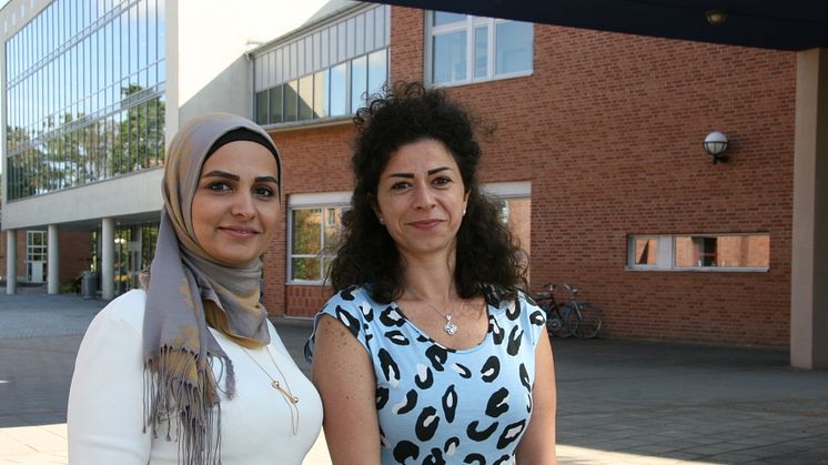 Nour Almardoud och Michelle Nahhas, båda från Syrien, har praktiserat på högskolan under året inom ramen för ”Praktik i staten” och arbetar nu på Arbetsförmedlingen. De deltog under praktikträffen och berättade om vägen till första jobbet i Sverige, bland annat tack vare praktiken på Högskolan Väst.