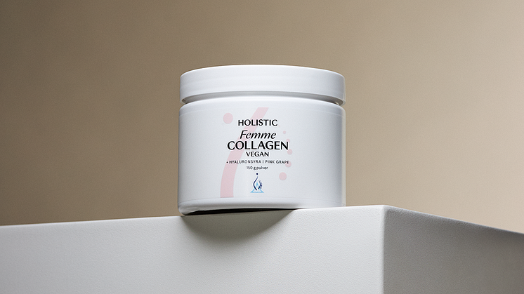 Kosttillskottsbolaget Holistic presenterar Holistic Femme Collagen – ett veganskt kollagentillskott med hög biotillgänglighet och vetenskapligt bevisad effekt. Femme Collagen har en aminosyraprofil identiskt med mänskligt kollagen typ 1 och tillhandahåller perfekta proportioner för att naturligt bygga upp kollagen i kroppen. Produkten är dessutom berikad med hyalouronsyra och har en en god och frisk smak av grapefrukt.