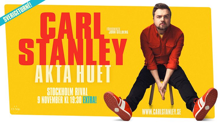 Extraföreställning ”Akta Huet” är Carl Stanleys tredje soloföreställning efter de utsålda succéerna Ärligt Talat (2017) och Född 1996 (2019). Nu är det dags att återigen besöka så många svenska teatrar och konserthus han bara hinner.