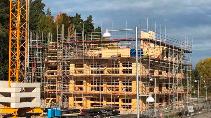 • Trästommen tar form i HSB:s miljöbygge