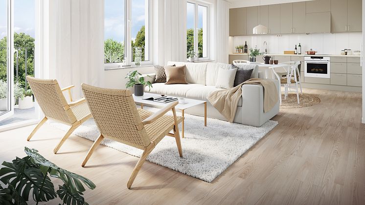 I brf Ester har stor omsorg lagts vid planeringen av ytorna. Lägenheterna är kvadratsmarta och har maximalt ljusinsläpp. Huvuddelen av lägenheterna har balkong eller uteplats. Ett antal större lägenheter är genomgående och har balkong/uteplats såväl mot gatan som mot gården. Inflyttning kommer att ske från början av 2024 och priserna börjar på 1 550 000 kr.