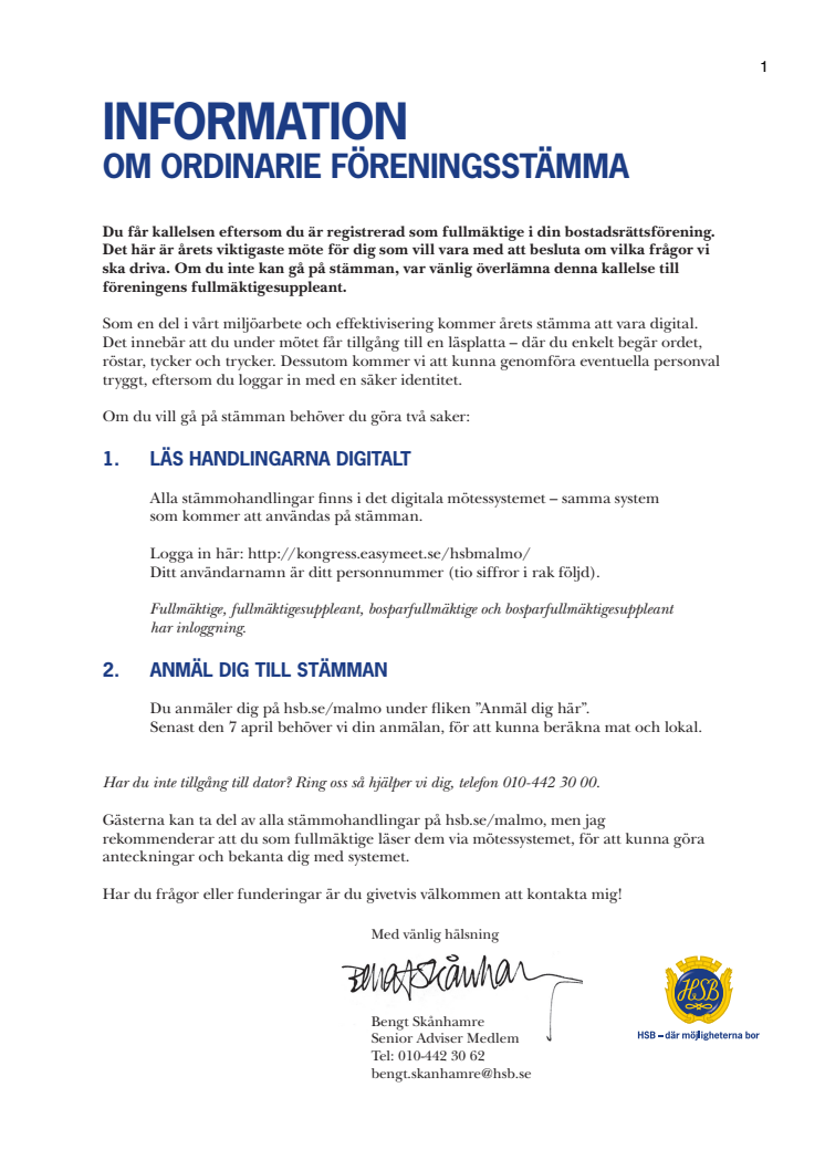 Stämmohandlingar till HSB Malmös föreningsstämma 2018