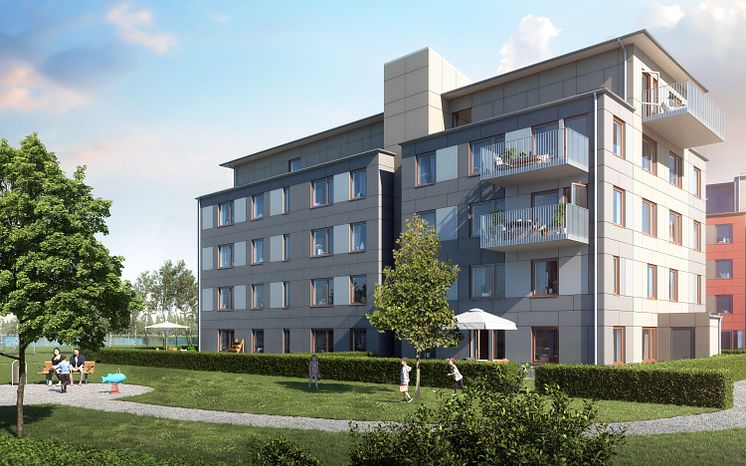 En av de fem huskropparna, ritat av arkitekten Arne Jönsson från Arkitektlaget AB