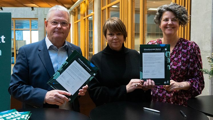 Michael Carlsson, vd HSB Malmö, Katrin Stjernfeldt Jammeh (S,) kommunstyrelsens ordförande och Sofia Hedén (S), kommunalråd med ansvar för miljö och service, Malmö stad.