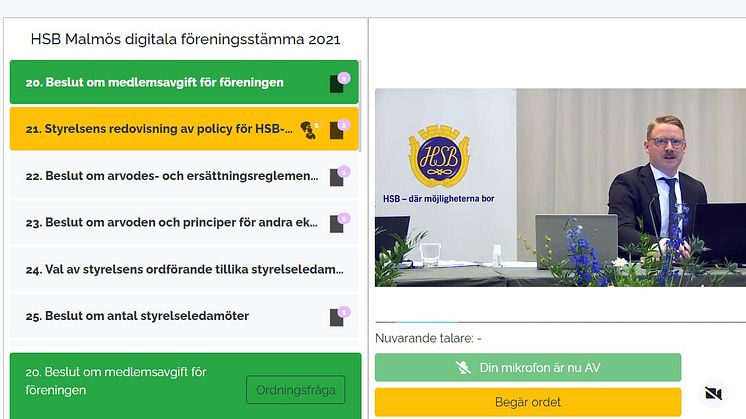 Stämman sändes även live så att övriga medlemmar och andra intresserade kunde följa mötet på distans. Protokollet publiceras inom kort på HSB Malmös hemsida.