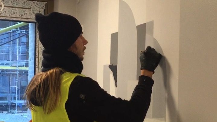 Tony Rubin Sjöman befinner sig i en trappuppgång i Örgryte, Göteborg. Resan från det finska arbetarhemmet till en konstnärsvåning i New York och nu har varit krokig men samtidigt rak. Sprayburkarna är utbytta mot målarburkar och penslar och idag är han en städad familjefar som tjänar tusenlappar på sin konst. Här i HSB brf Studio 2 kommer de boende att kunna njuta av hans precisa konst varje dag när de går in och ut från sin entré. Tony målar totalt 15 målningar uppdelat på 4 olika hus, 10 trappväggar på bottenplan samt cykelrum. Dessa målningar är alla mellan 2 och 15 kvadratmeter stora. Ingen linjal eller passare finns med i verktygslådan. Endast pensel och färg. I graffitikretsar är just handens stabilitet, förmågan att måla så rakt och snabbt som möjligt som gör skillnad på en medioker sprayare och ett fullblodsproffs. Det var Andreas Norrman, arkitekt på Malmström Edström Arkitekter som ritat HSB brf Studio 2, som tog in Tony Rubin Sjöman i projektet att ansvara för den konstnärliga utsmyckningen i husen. Just konstnärlig utsmyckning i HSBs bostadsrättsföreningar går tillbaka till grundaren arkitekten Sven Wallander som växte upp i ett konstnärligt hem och ansåg att skönhet tillhörde god funktion i samma utsträckning som varmvatten eller en bra spis. Ända sedan starten 1923 har HSB-hus över hela Sverige utsmyckats med mängder av konstverk. -Vi ser det som ett klokt sätt att återinvestera vinsten i det område där vi verkar. En konstnärlig ambition som ger möjlighet att skapa en attraktivare miljö som i sin tur bidrar till att människor mår bra. Det kan handla om skulpturer och väggmålningar, om belysning men även interiört som lobbyn i Studio 1 i Örgryte Torp, säger Lena Josgård, chef Mark och projektutveckling på HSB Göteborg. |