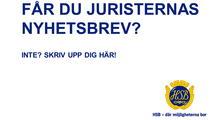 Om du också vill ha vårt nyhetsbrev så skicka ditt namn och e-post till juristerna@hsb.se och skriv att du vill ha vårt nyhetsbrev.