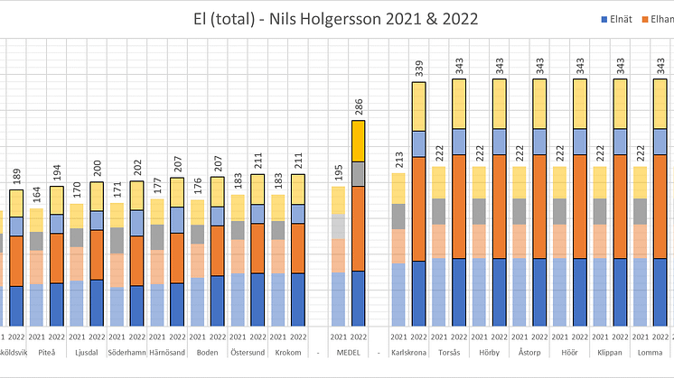 Det är första gången i Nils Holgerssongruppens 27-åriga historia som kostnaden för el tangerar fjärrvärmen. På grund av de stora prisskillnaderna över landet har Nils Holgerssongruppen valt att använda sig av fyra olika medelpriser för elhandeln, ett för varje elprisområde. Historiskt brukar Nils Holgerssongruppen i första hand koncentrera sig på elnätsavgifterna, en avgift som är beroende av det nätområde fastigheten ligger inom och som är svår för kunderna att påverka.