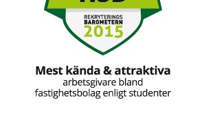 HSB är det mest attraktiva och kända fastighetsbolaget. Det visar Rekryteringsbarometern 2015, en enkätundersökning där studenter från landets högskolor och universitet inom fastighetsrelaterade utbildningar får säga sitt. Det är andra året i rad som HSB vinner denna utmärkelse.