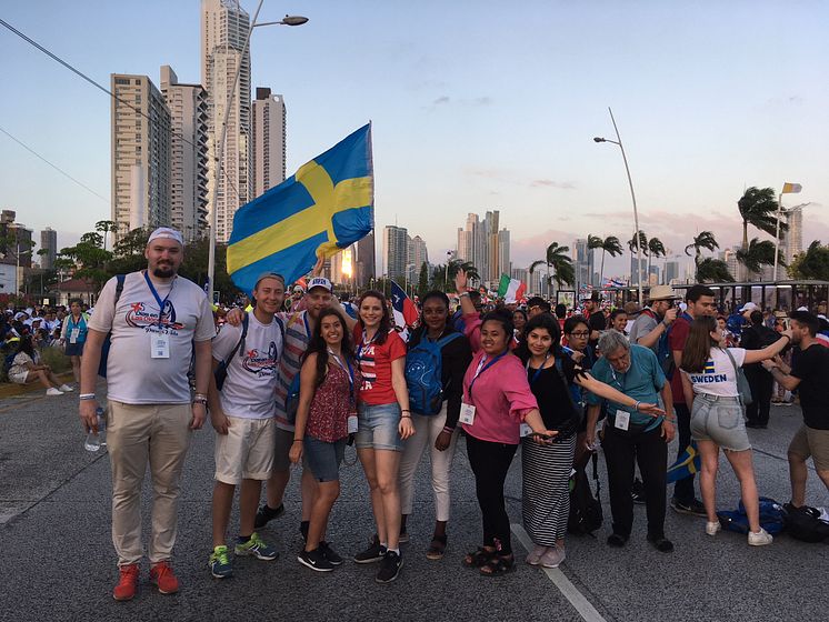 Unga svenska katoliker på Världsungdomsdagarna i Panama City.