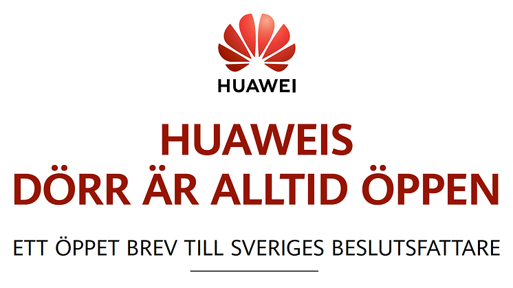 Idag publicerar Huawei ett öppet brev till svenska politiker, myndigheter och media genom helsidesannonser i Dagens Nyheter och Dagens Industri. ”Vi har inget att dölja och inget att skämmas för” skriver Huaweis nordiska chef Kenneth Fredriksen i det öppna brevet som har titeln ”Huaweis dörr är alltid öppen”. Syftet med det öppna brevet är att få till en dialog med svenska makthavare och slå hål på myterna kring Huawei.