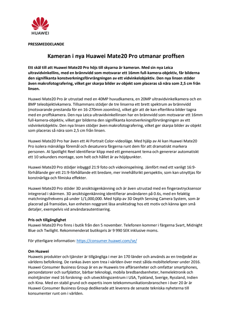 Kameran i nya Huawei Mate20 Pro utmanar proffsen