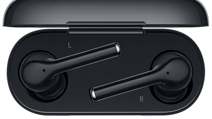 Laddningsfodralet stödjer snabb och trådlös laddning med upp till 20 timmar batteritid. Freebuds 3 kan laddas av både trådlösa laddare och telefoner som stödjer omvänd trådlös laddning.