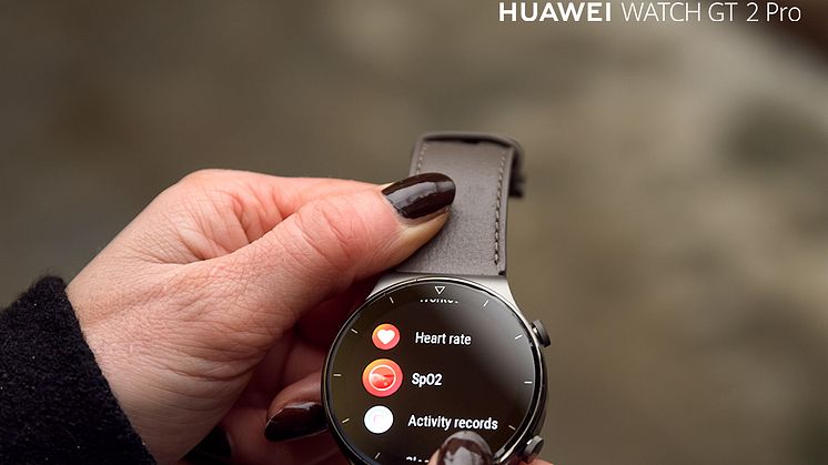 Syreupptagningsförmåga – Med hjälp av Huawei Watch GT2 Pro kan man hålla koll på sin syremättnad i blodet. En försämrad syreupptagningsförmåga kan indikera att en infektion är på gång och kan även förekomma vid problem med hjärt- och lungfunktionen.