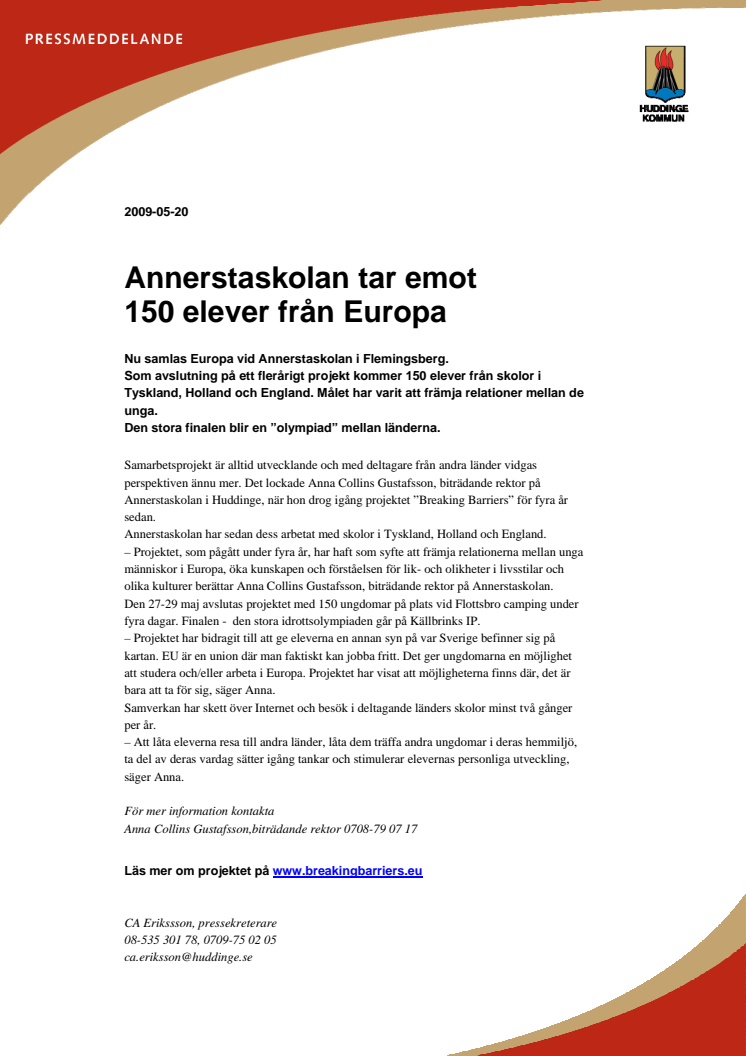 Nu samlas Europa vid Annerstaskolan i Flemingsberg.
