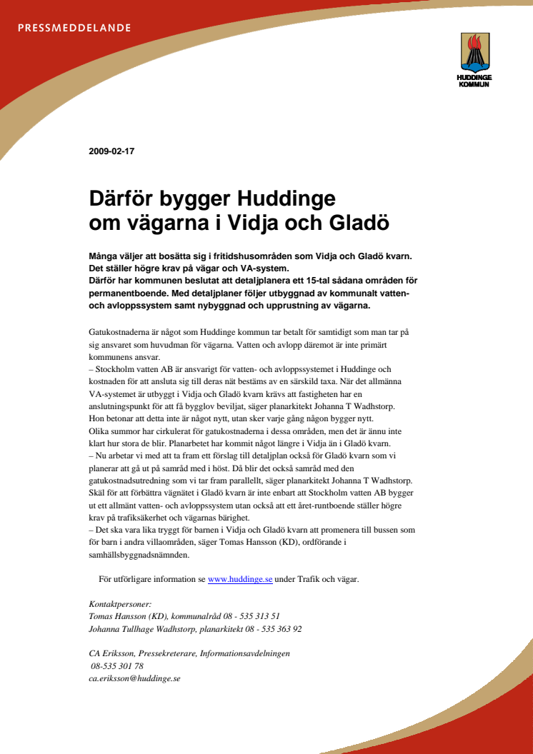 Därför bygger Huddinge om vägarna i Vidja och Gladö