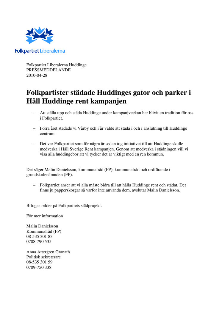 Folkpartister städade Huddinges gator och parker i Håll Huddinge rent kampanjen