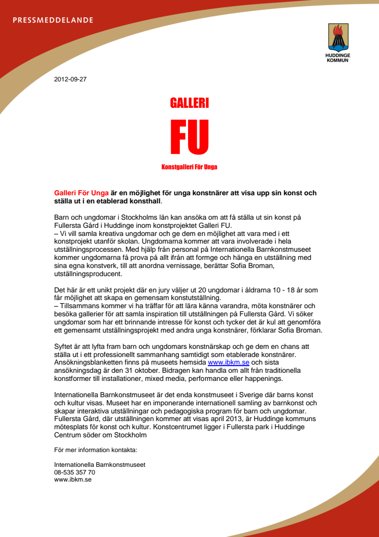 Galleri För Unga är en möjlighet för unga konstnärer att visa upp sin konst och ställa ut i en etablerad konsthall.