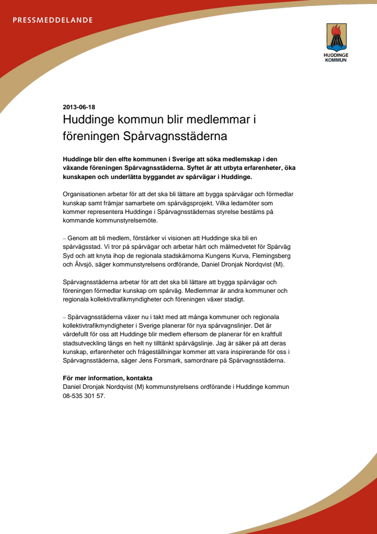 Huddinge kommun blir medlemmar i föreningen Spårvagnsstäderna