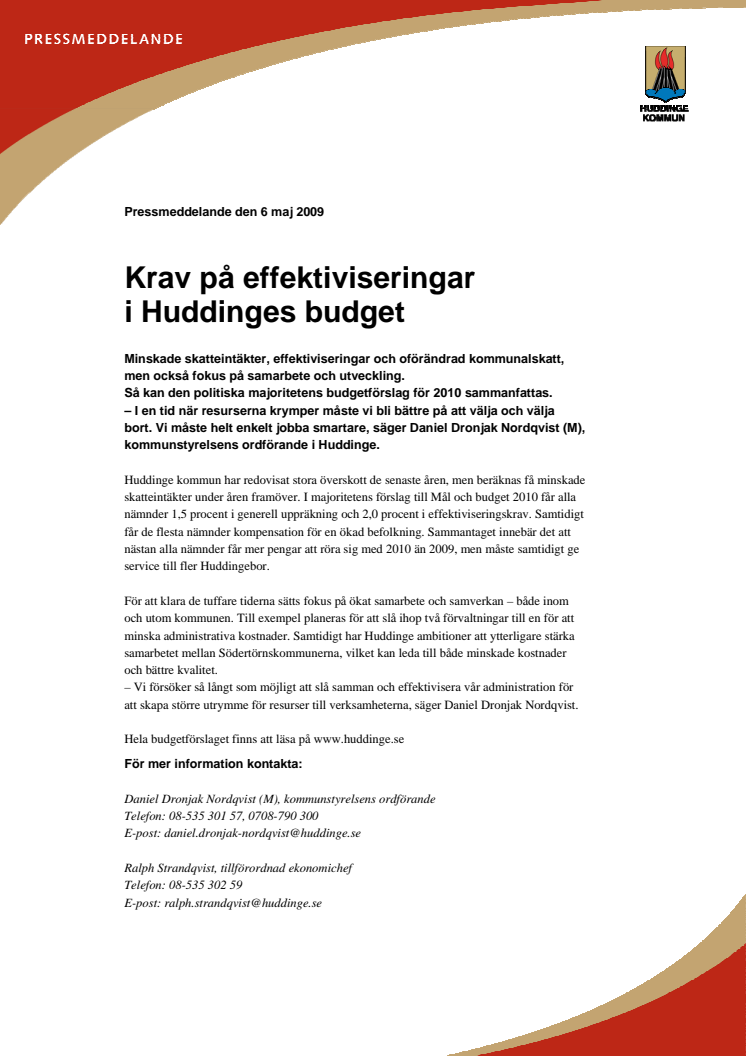 -I en tid när resurserna krymper måste vi bli bättre på att välja och välja bort. Vi måste helt enkelt jobba smartare, säger Daniel Dronjak Nordqvist (M), kommunstyrelsens ordförande i Huddinge.